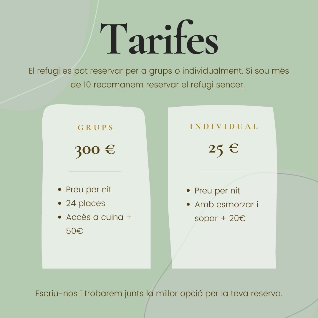 La primera casa que hem rehabilitat és el nostre Refugi. Un espai de 24 places on oferim formacions, caps de setmana i retirs. Fés clic per + info.